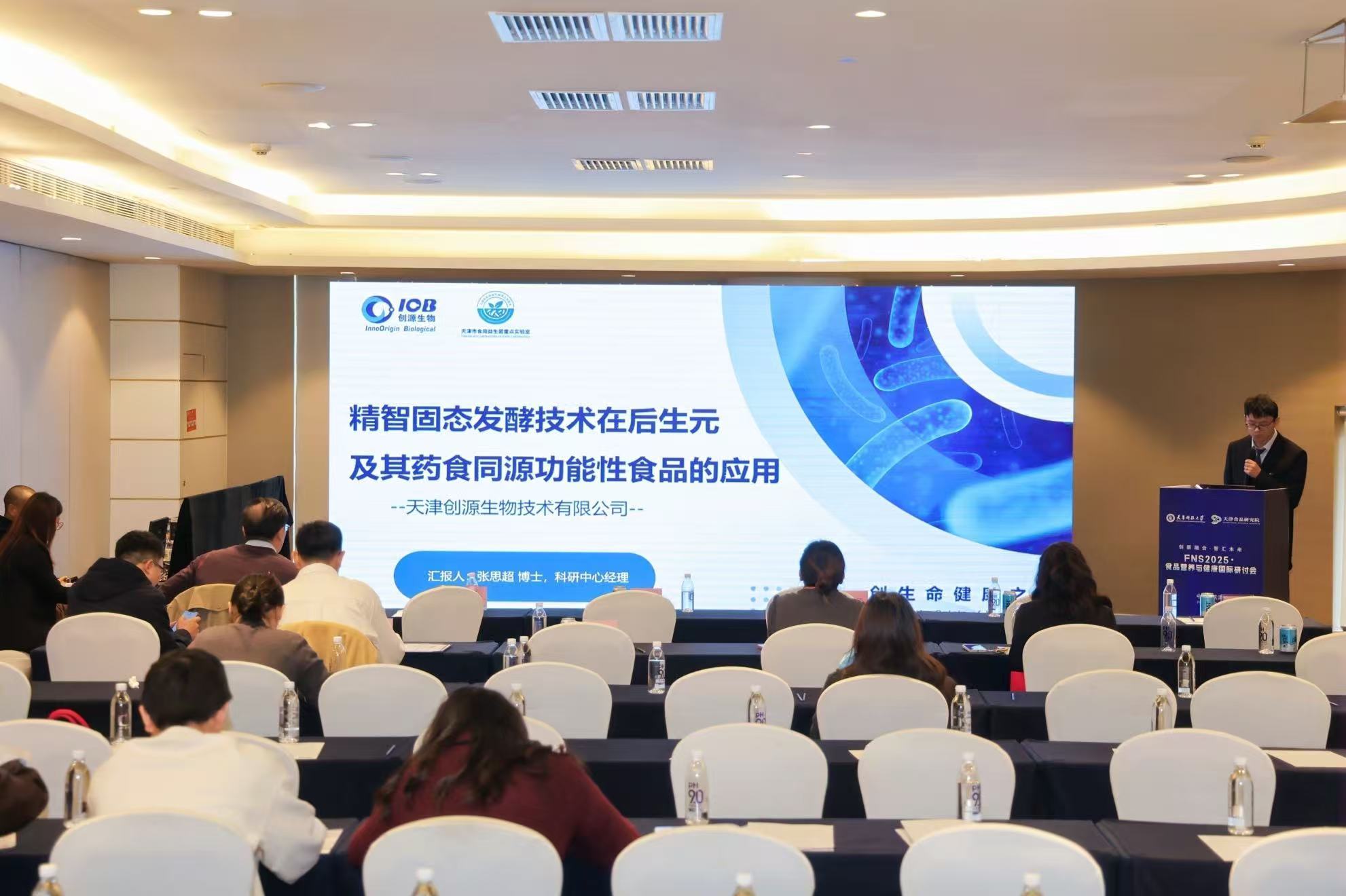 作为国内微生态制剂领域的领先企业,天津创源生物技术有限公司受邀出席。公司科研中心经理张思超博士在会上发表专题演讲,系统展示了创源生物在“精智固态发酵技术”方面的关键突破,及其在后生元与药食同源功能性食品中的创新应用。